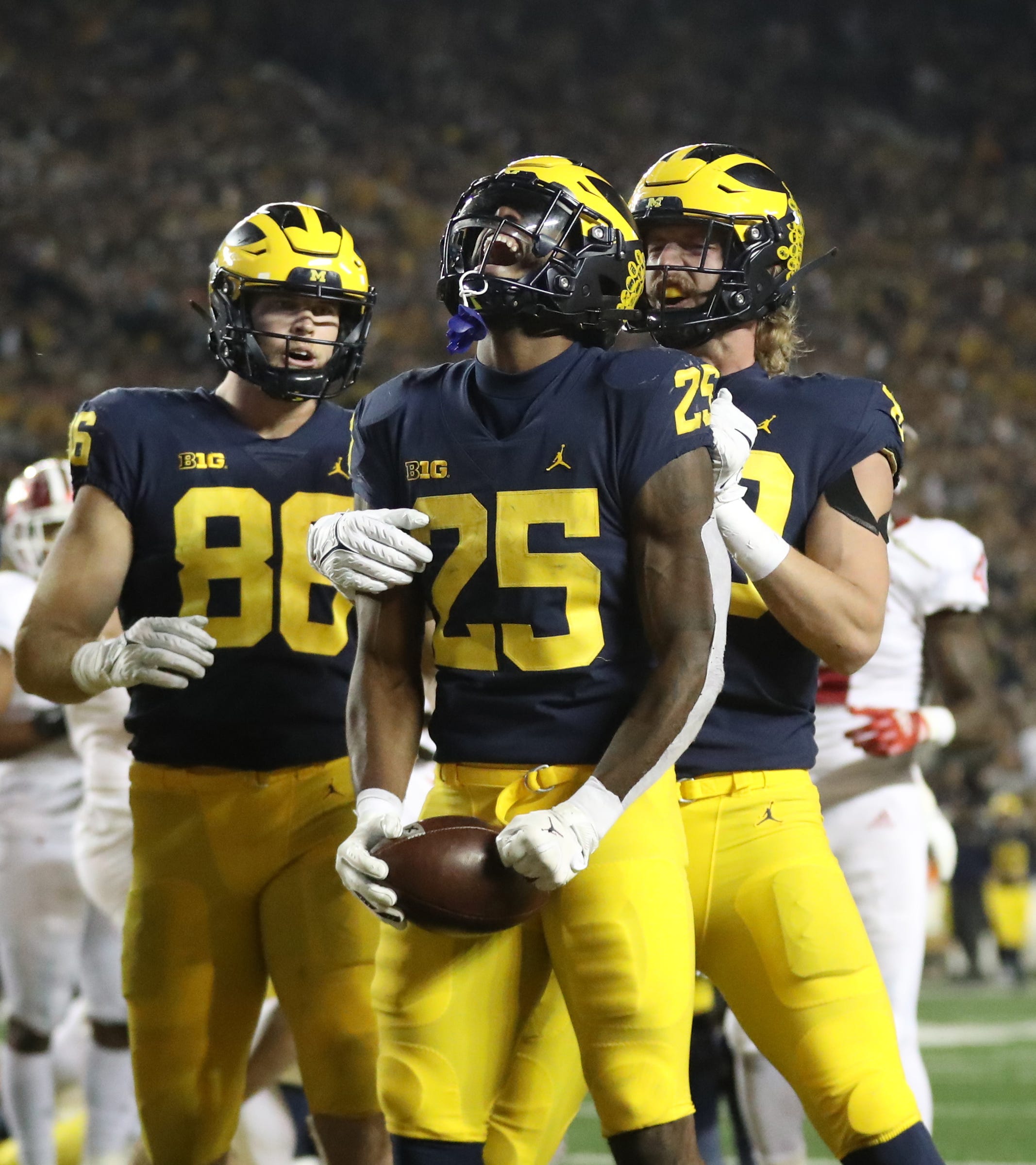 Michigan rides Hassan Haskins dominant defense to blowout of Indiana. When Michigan needs a big yard Michigan coach Jim Harbaugh says his star running back wants the ball in his hands. Michigan running back Hassan Haskins 25 reacts after scoring a touchdown during the. Hassan Haskins shoulders role as Michigans primary run option.